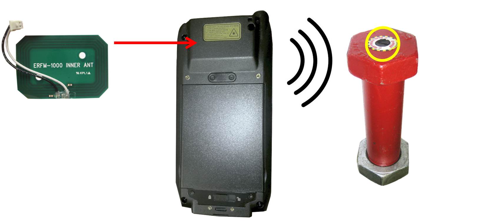 The standard handheld reader we provide from SmarTerminal can be configured with an appropriate RFID reader with its antenna built into the back of the device, so we tried that first. This reader worked well for tags that were flush with the metal and easily accessible. However, some of the tags were placed inside the metal housing of the equipment, rendering them absolutely unreadable. We just couldn’t get this antenna close enough – the reader body kept getting in the way.